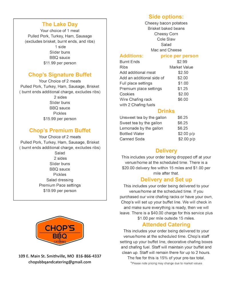 Catering Menu and Inquiry